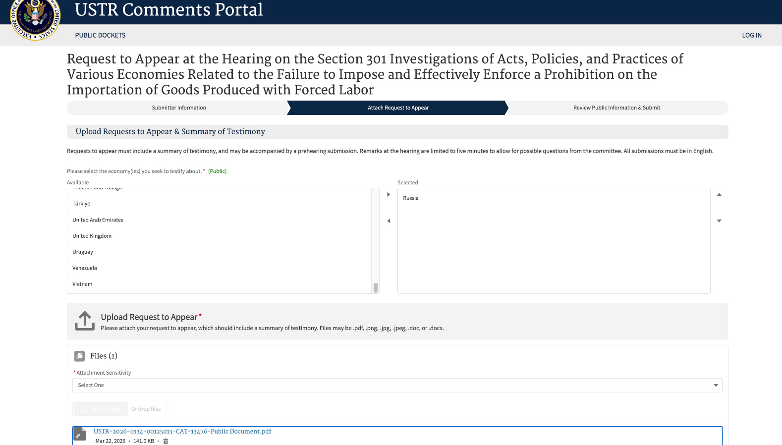 Подача осуществлена в рамках процедуры Section 301, предусматривающей рассмотрение представленных материалов при формировании оценок и дальнейших решений в сфере торговой политики.